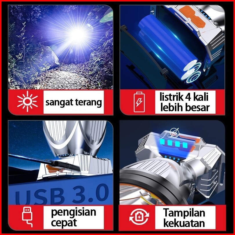 Hindegko T31 Led Headlamp 1200watt Penerangan Senter Kepala Headlamp Super Terang Outdoor Camping Berburu Hiking Lampu S
