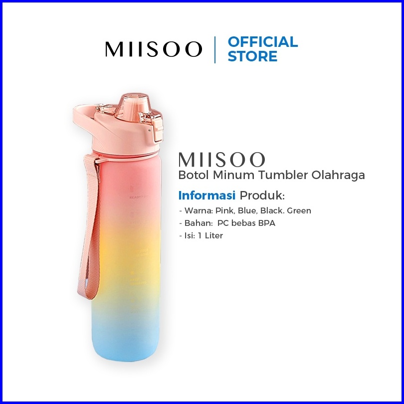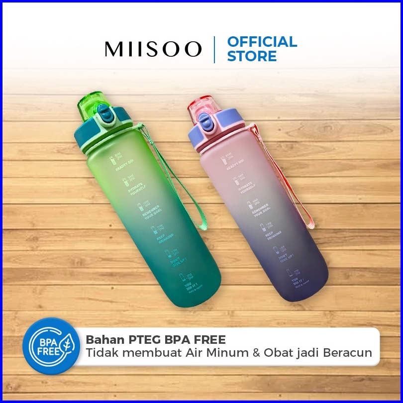 Miisoo Botol Minum Tumbler Olahraga Sport Unik Botol Motivasi 1000ml Botol Penanda Gradient Gradasi