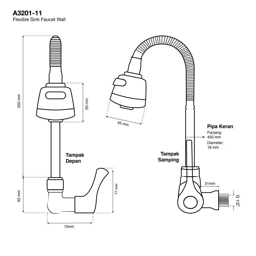 [Mall] VONE Kran Cuci Piring Fleksibel Model Angsa Bahan ABS Chrome Kuat Awet Keran Sink Dapur Tempel Tembok