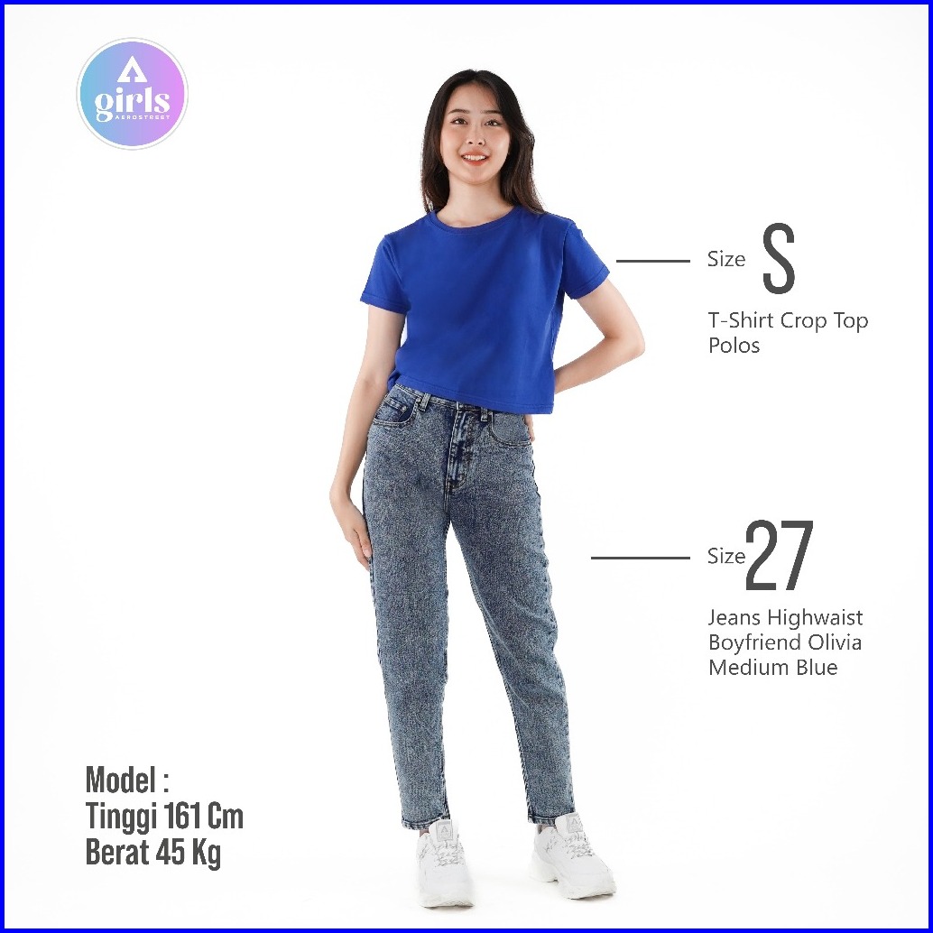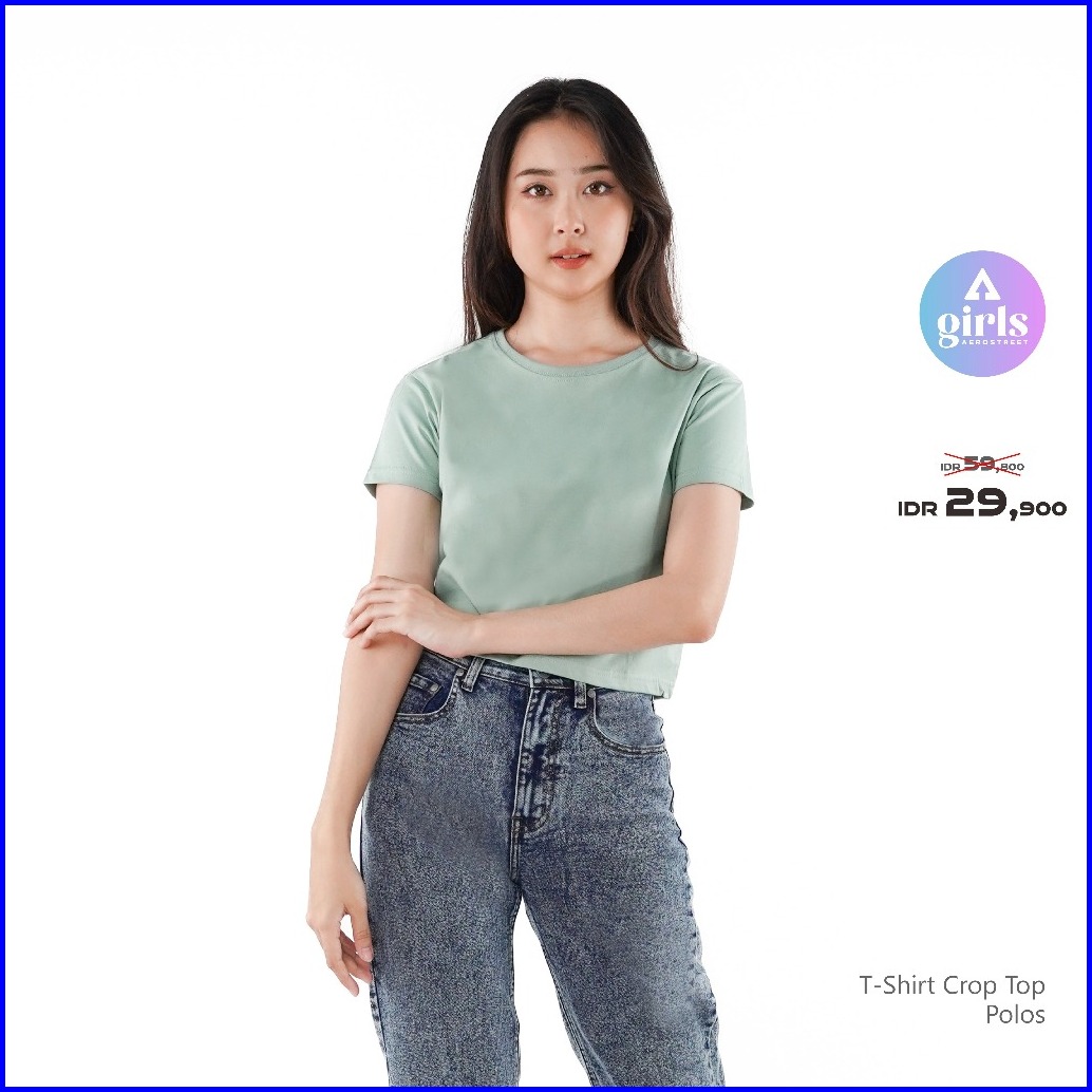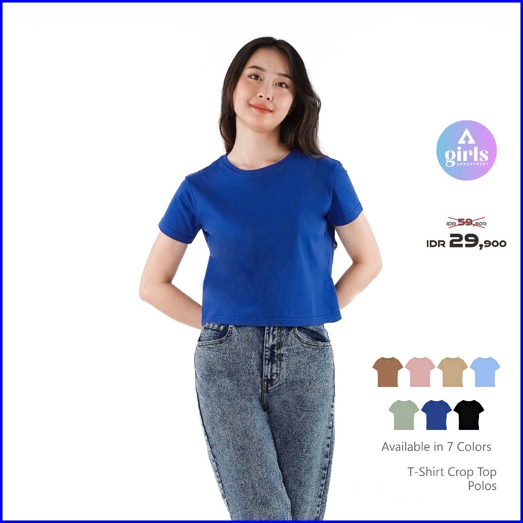 Aerostreet T Shirt Reguler Crop Top Polos Gelap Woman Kac01
