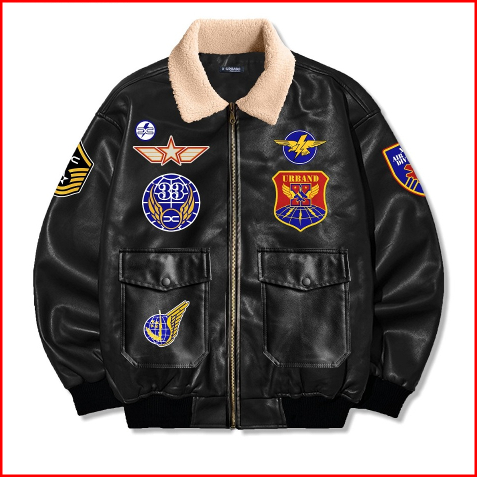 Dhozen Jaket Varsity Unisex Vintage Semi Kulit Viena Sherpa