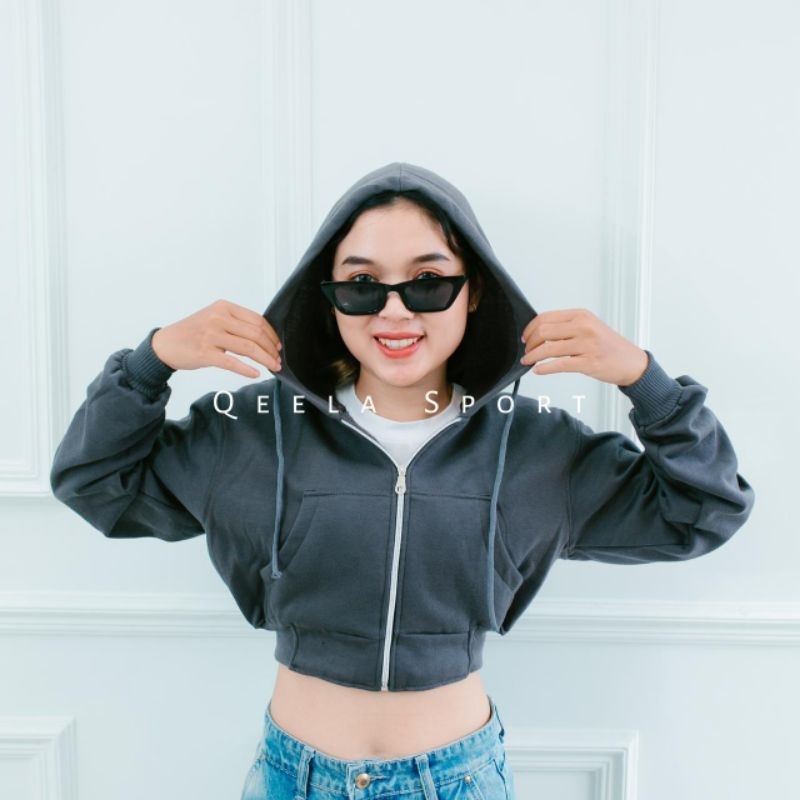 HOODIE JAKET WANITA CROP HOODIE JAKET WANITA CROP HOODIE ZIPPER BASIC CROP POLOS PREMIUM Jket Sweater Creawneck Hoodie W
