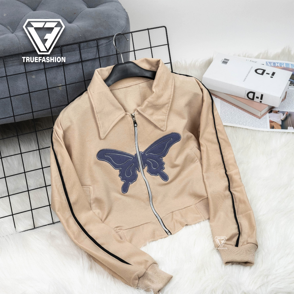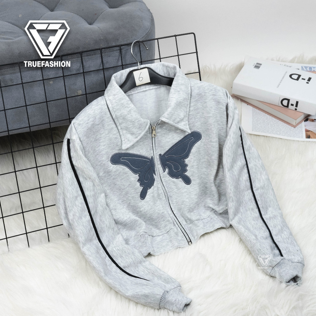 HOODIE JAKET WANITA CROP HOODIE JAKET WANITA CROP TF - BLUE BUTTERFLY Jket Crop Zipper 3D Bordir Wanita