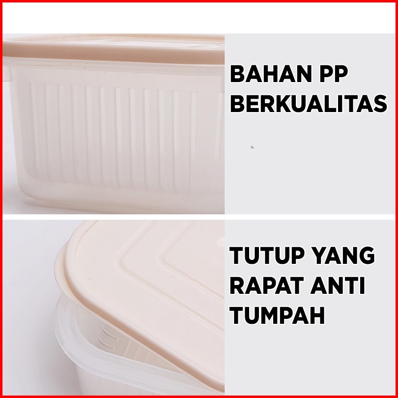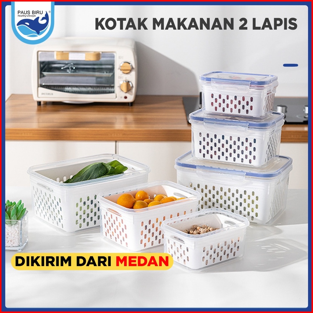Paus Biru - Kotak Makanan Keranjang Pengeringan 2 Lapis Multifungsi Persegi Kotak Food Storage Dapur Kotak Penyimpanan D