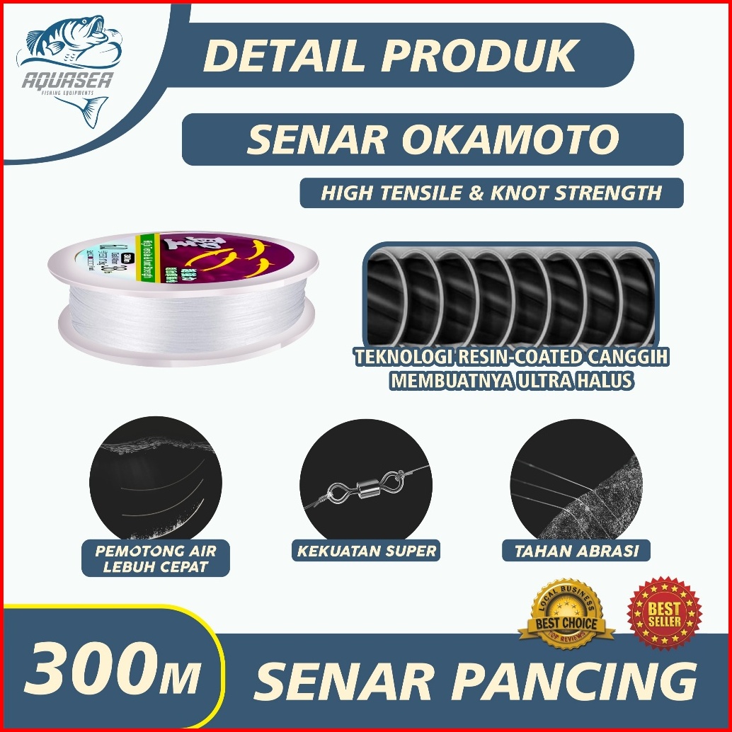 Aquasea Tali Pancing Okamoto Warna Putih Senar Pancing Jepang 300m Kekuatan Tarik Tensil