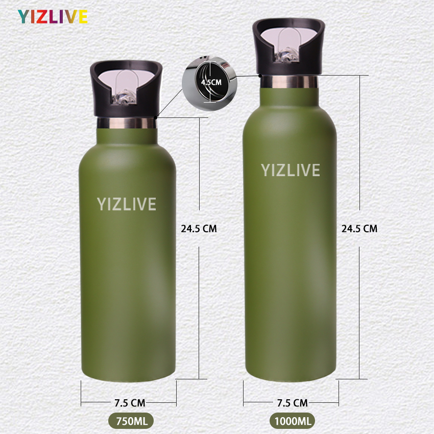 [Star] Terbaru Yizlive 750/1000ml set peralatan botol minum 304 tumbler stainless dengan sedotan
