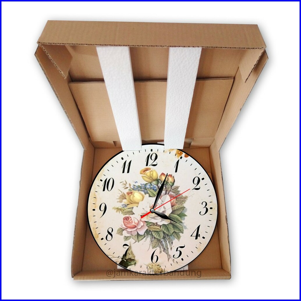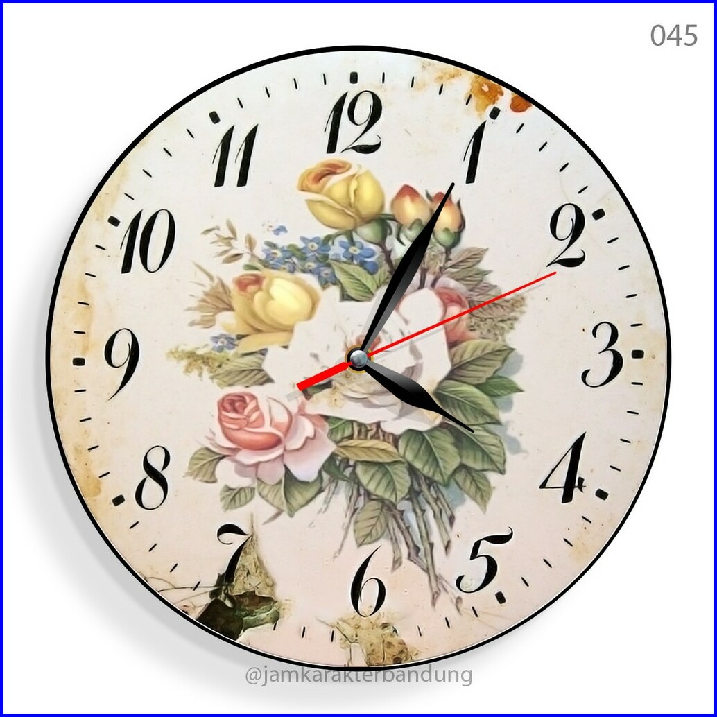 Jam Karakter Bandung - 045 Jam Dinding Cantik Motif Bunga Klasik Dekorasi Ruangan