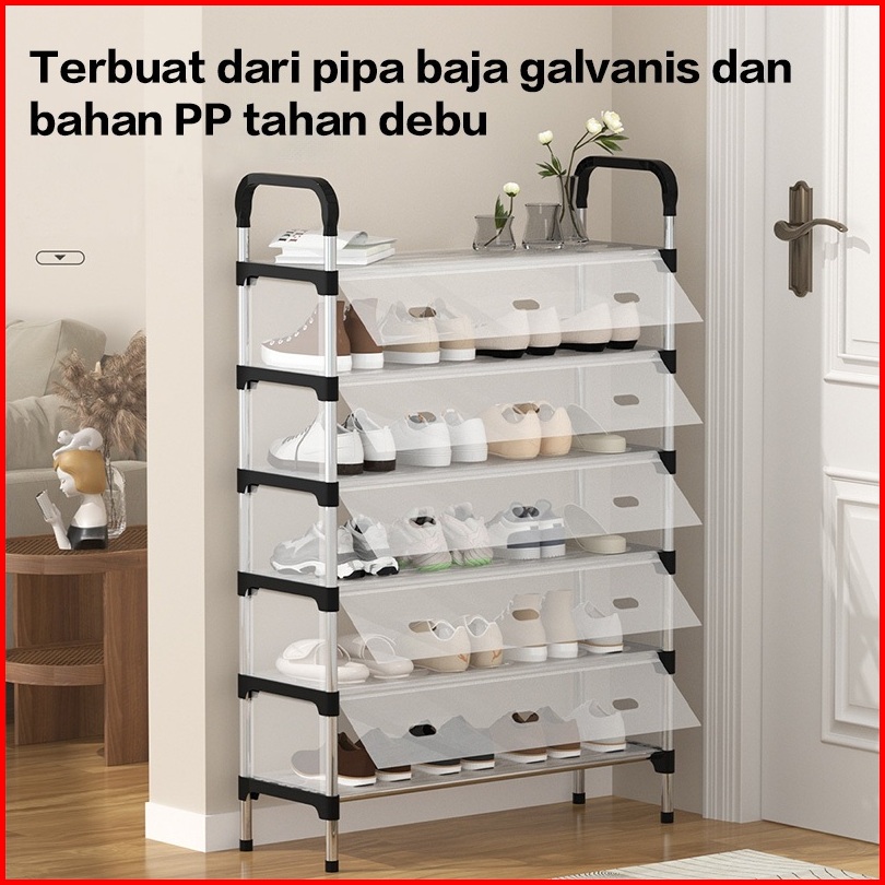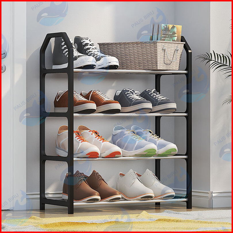Paus Biru - Rak Sepatu 4 Susun Serbaguna - Rak Sandal Minimalis Hitam Putih -rak Serbaguna 4 Tingkat