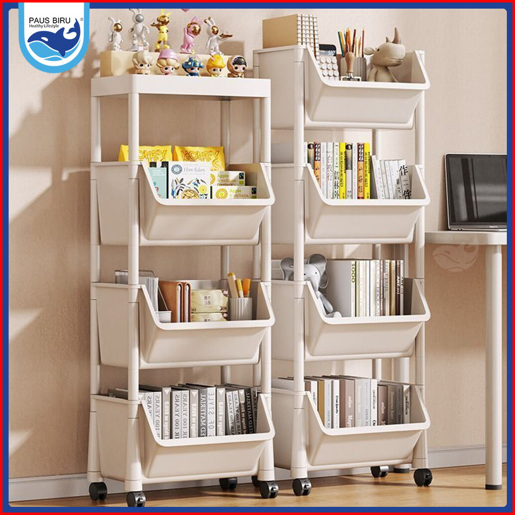Paus Biru - Rak Serbaguna Buku Rak Susun Tempat Portable Roda Rak Toy Storage Rak Susun H83