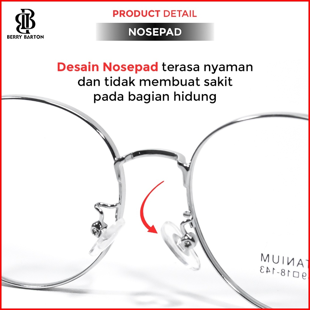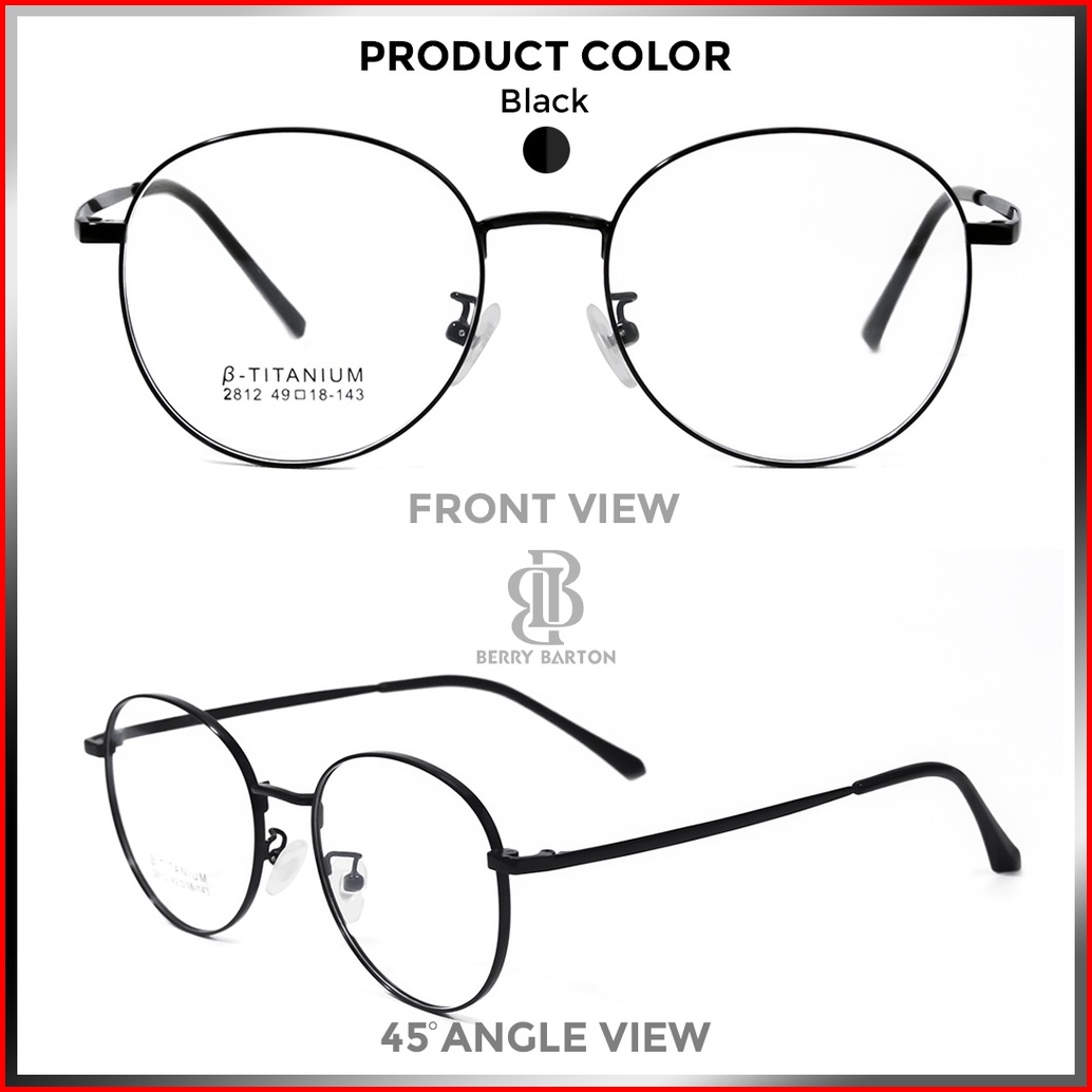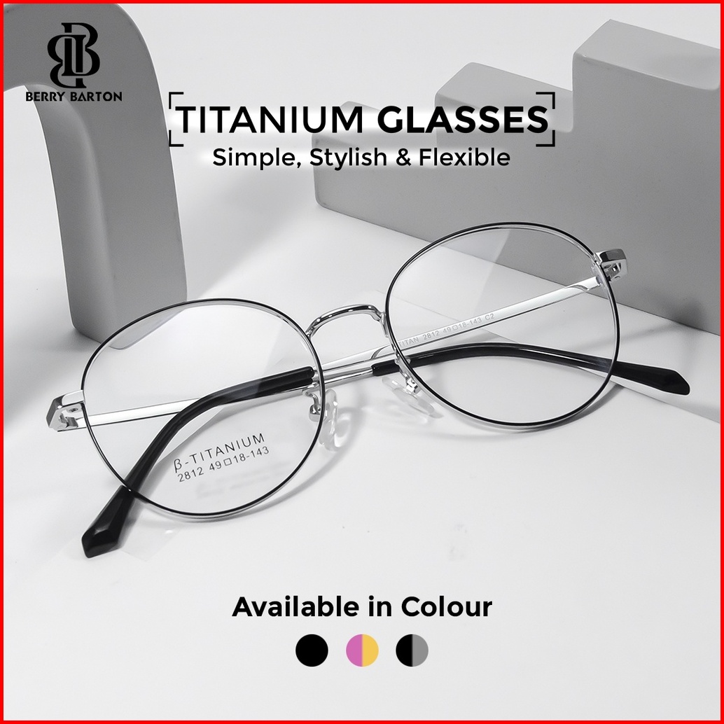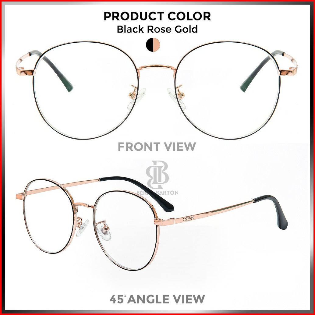 Berrybarton - Kacamata Bulat Modern Titanium Lensa Minus Anti Radiasi Bluecromic 2812