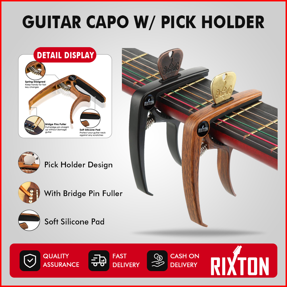 Rixton Guitar Capo With Pick Slot Metal Wood Grain Guitar Capo Easy Change Clamp Key Acoustic