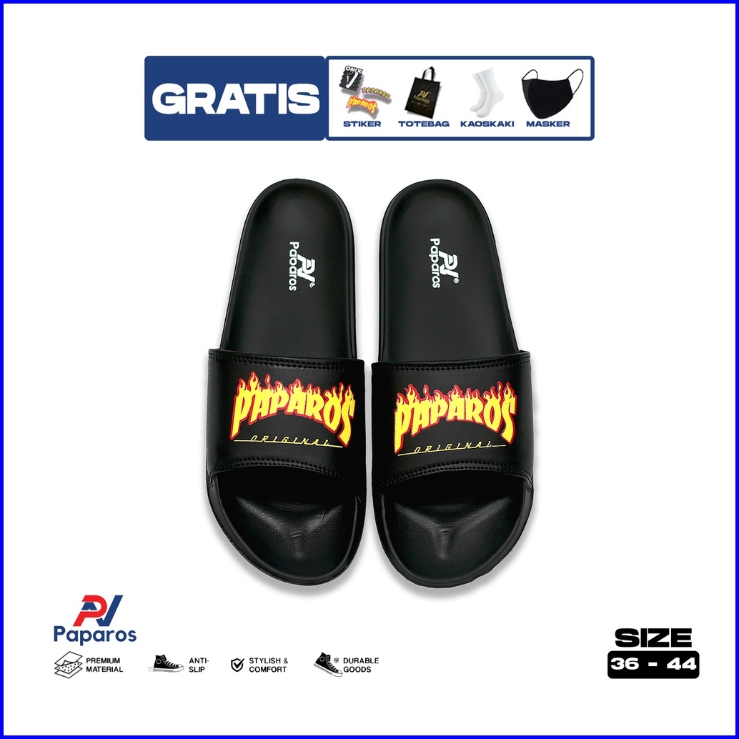 Paparos Footwear Sandal Slide Series Flame Black - Sandal Selop Kasual Pria Wanita Sandal Pria Sandal Wanita Sandal Unis