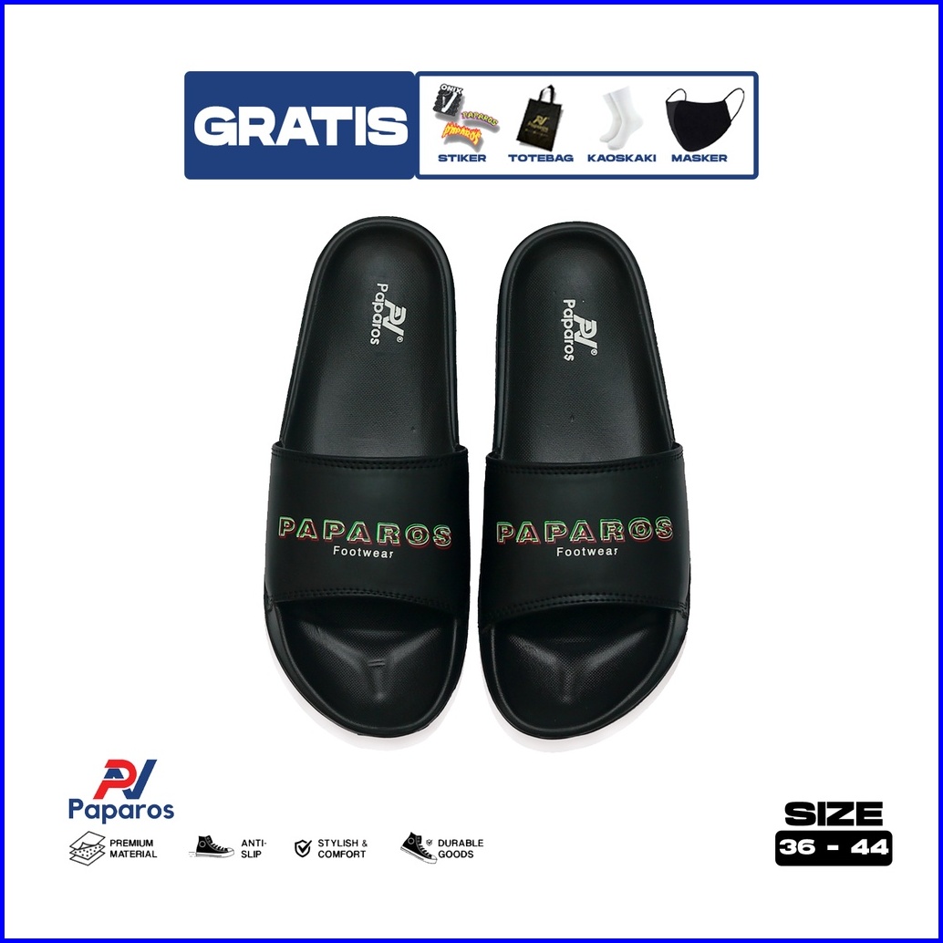 Paparos Footwear - Sandal Slide Series Focus Black - Sandal Selop Kasual Pria Wanita