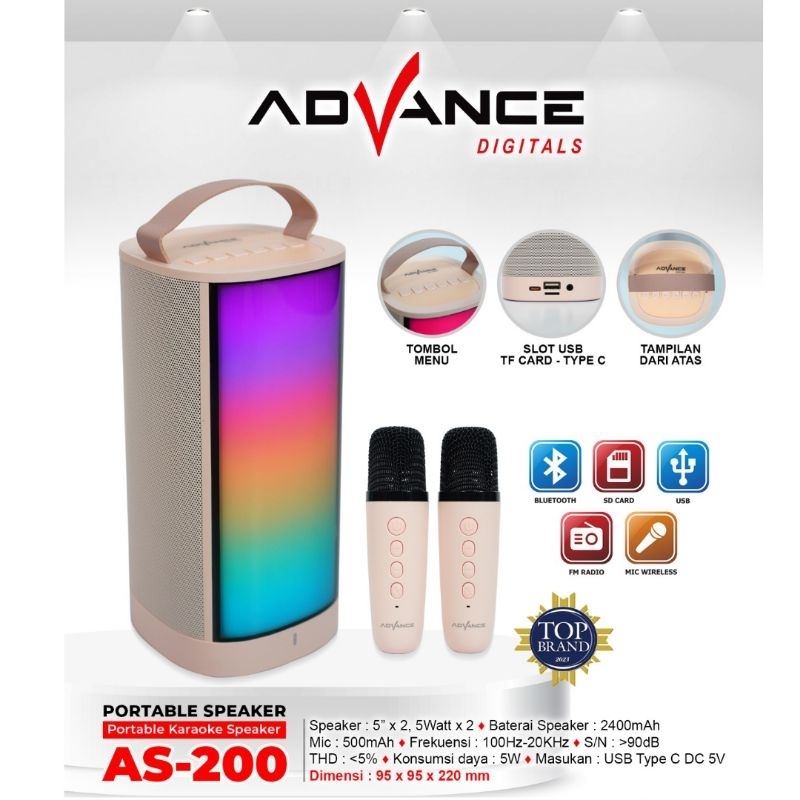 [Star]ADVANCE SPEAKER PORTABLE BLUETOOTH KARAOKE MINI AS-200 FREE 2 MICROPHONE