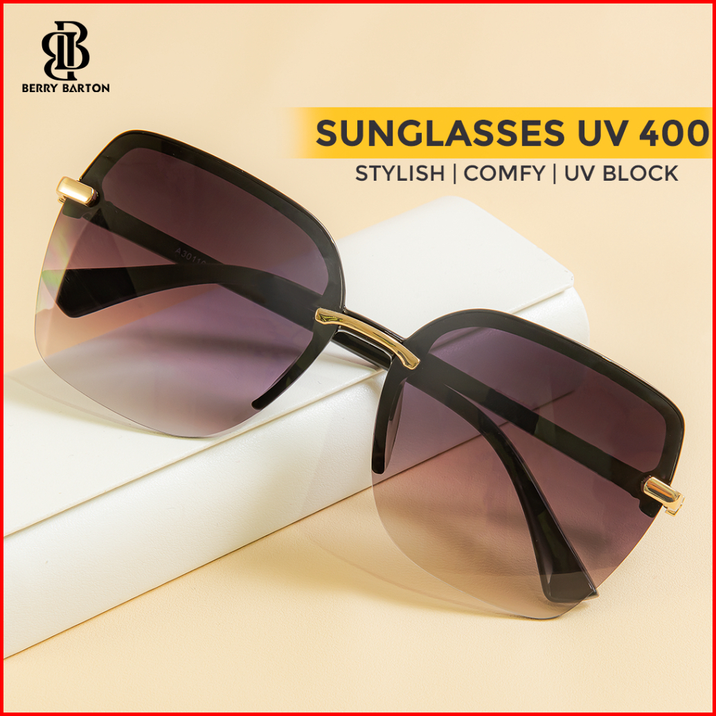 Berrybarton - Kacamata Hitam Segi Empat Modern Sunglasses Anti Uv400 Wanita 30110