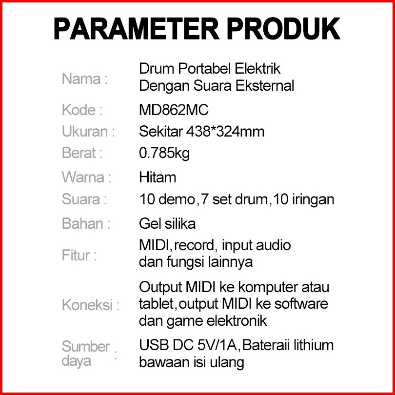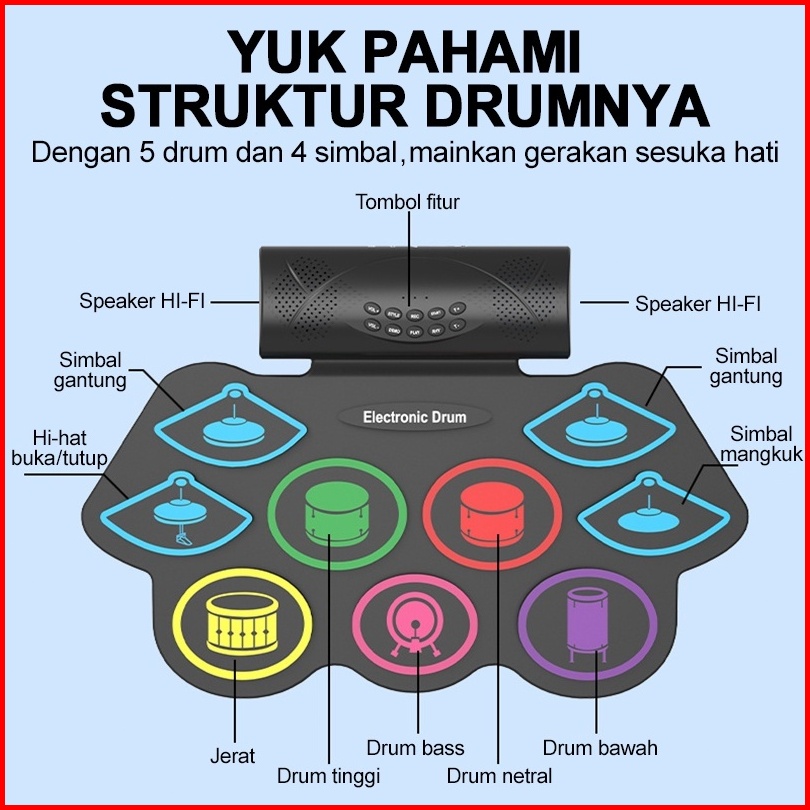 Benston Music- Set Drum Elektronik Drum Elektronik Suara Eksternal Portabel Bluetooth Set Drum Gulung Anak-anak