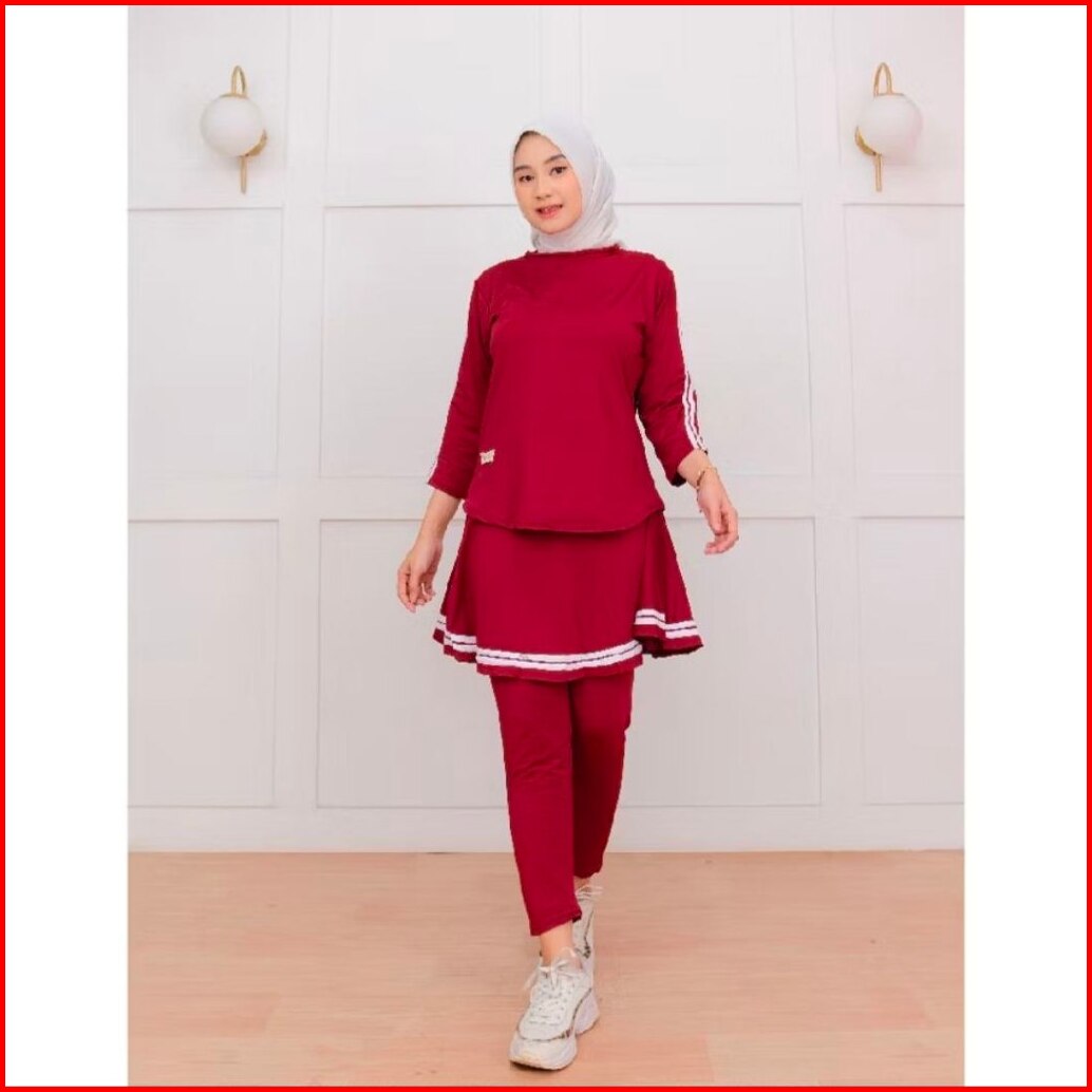Setelan Baju Olahraga Wanita Muslim Terbaru Leging Rok Skirt Perempuan Sport Badminton Senam Lari Renang Bersepeda Zumba
