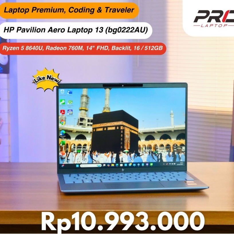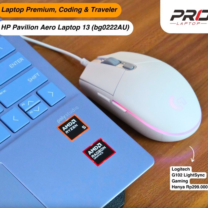 HP Pavilion Aero Laptop 13 (bg0222AU), AMD Ryzen 5 8640U, 16/512GB, Layar 13.3"WUXGA