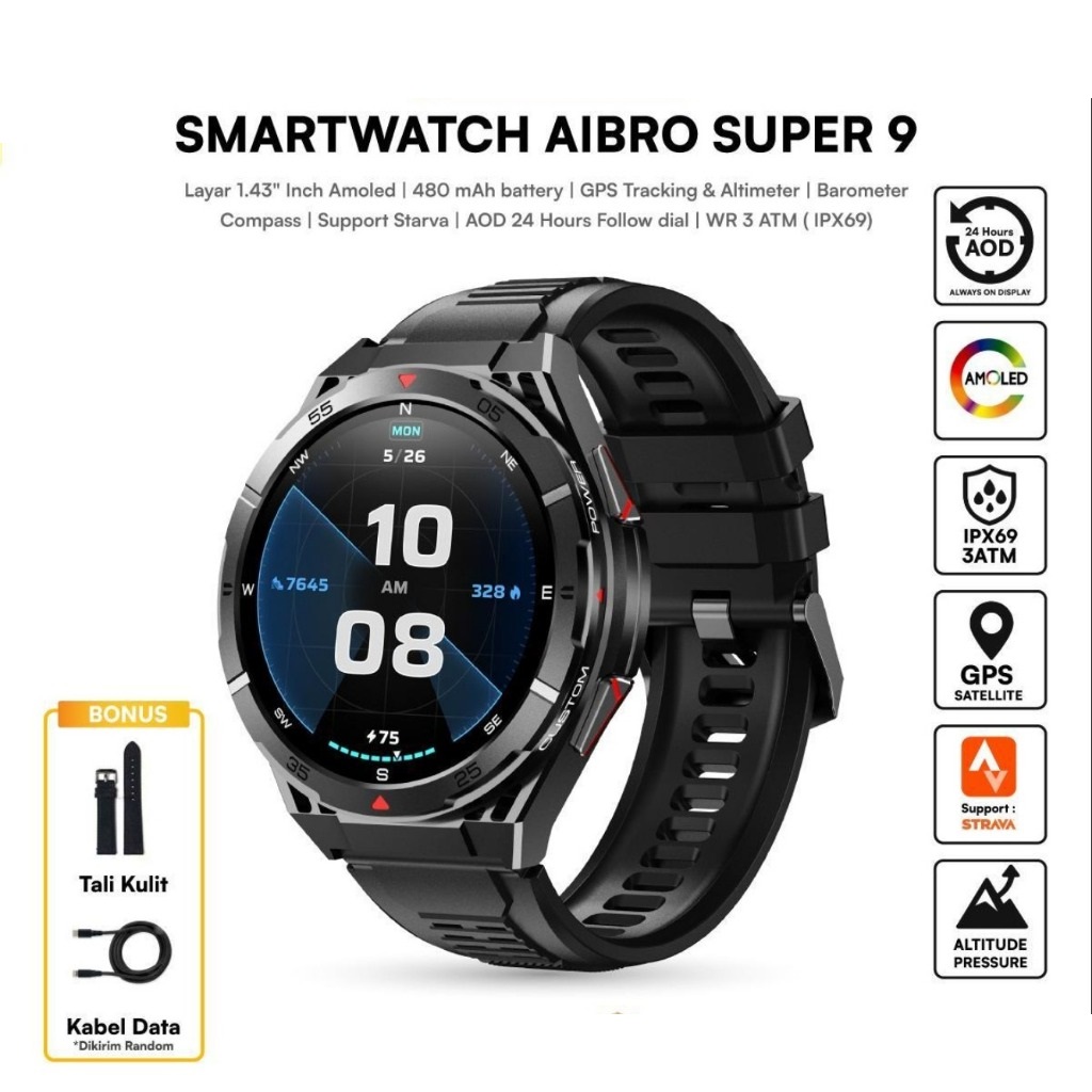 Smartwatch Amoled Aibro SUPER 9 Jam Tangan Anti Air Layar Full HD Amoled | IPX69 anti dust 3ATM | Bluetooth Call