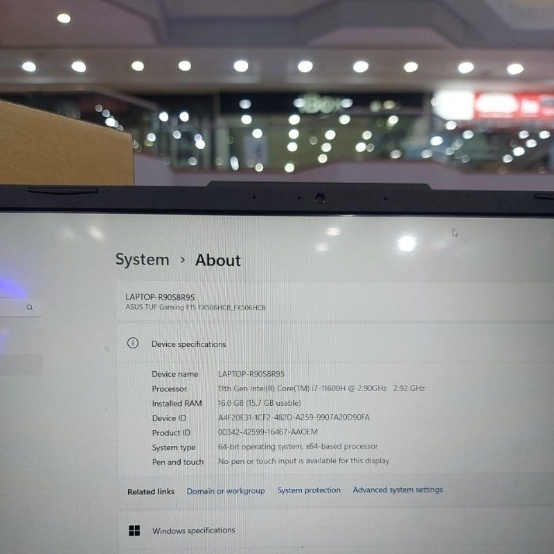 Laptop asus tuf gaming F15 FX506H core i7 11600H ram 16gb ssd 256gb rtx 3050 479