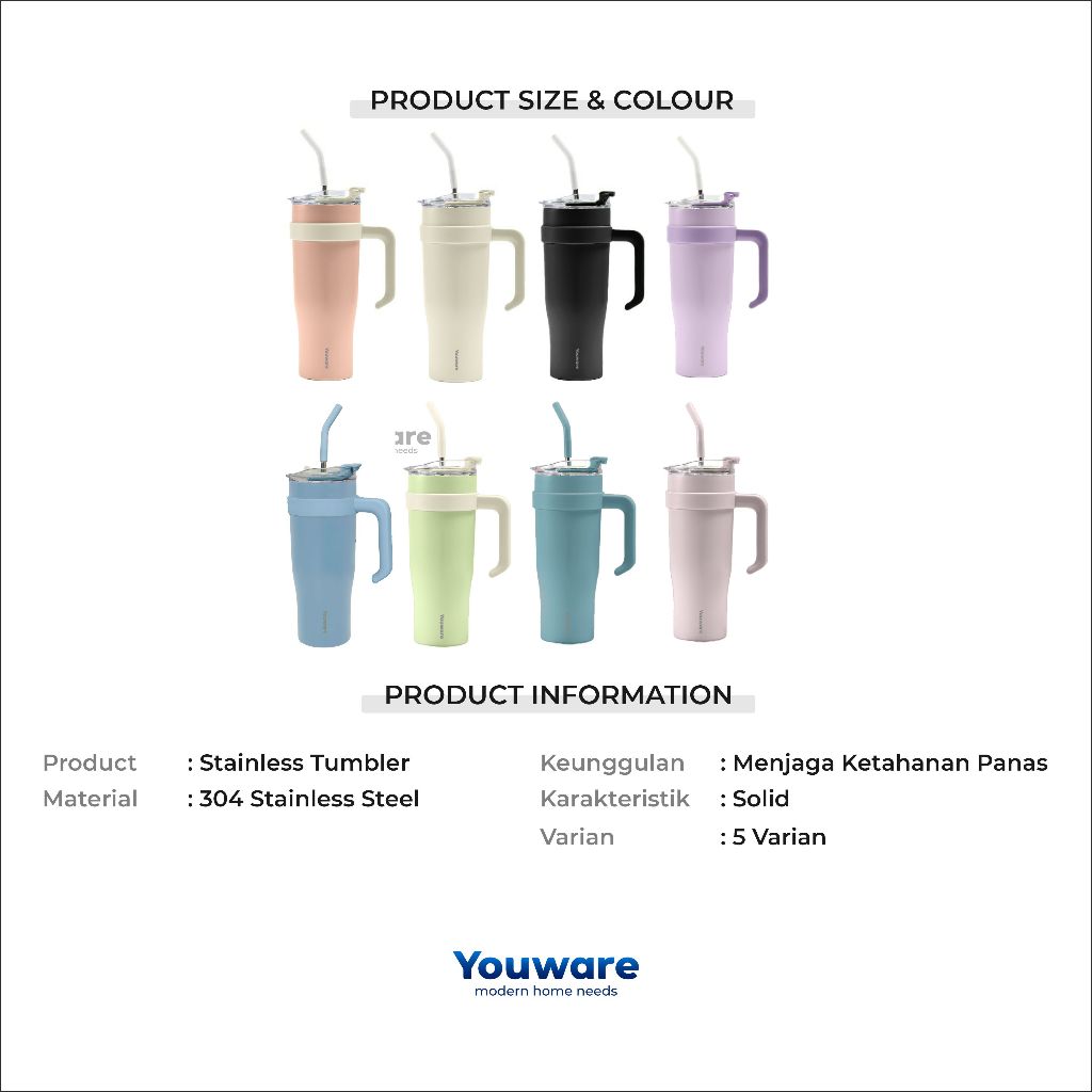 [Star] Terbaru Youware - Noire Botol Minum Tumbler Stainless Steel 1200ml Tahan Panas Dingin
