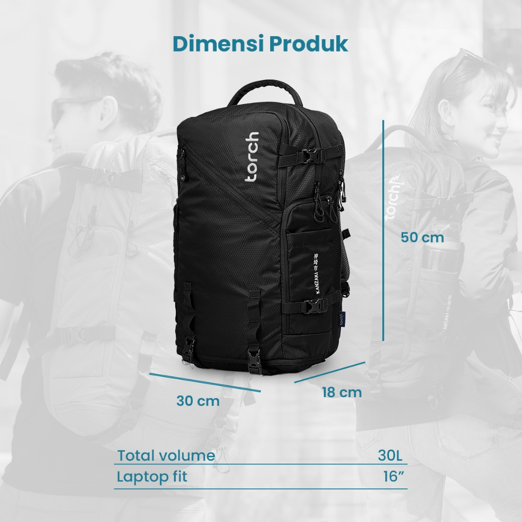 Tas Ransel Torch Kanzaki Travelling Punggung Kerja Laptop Tahan Air 30 Liter
