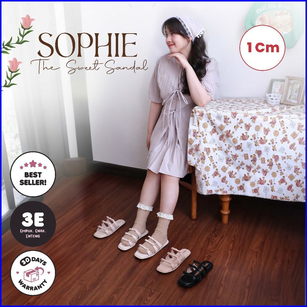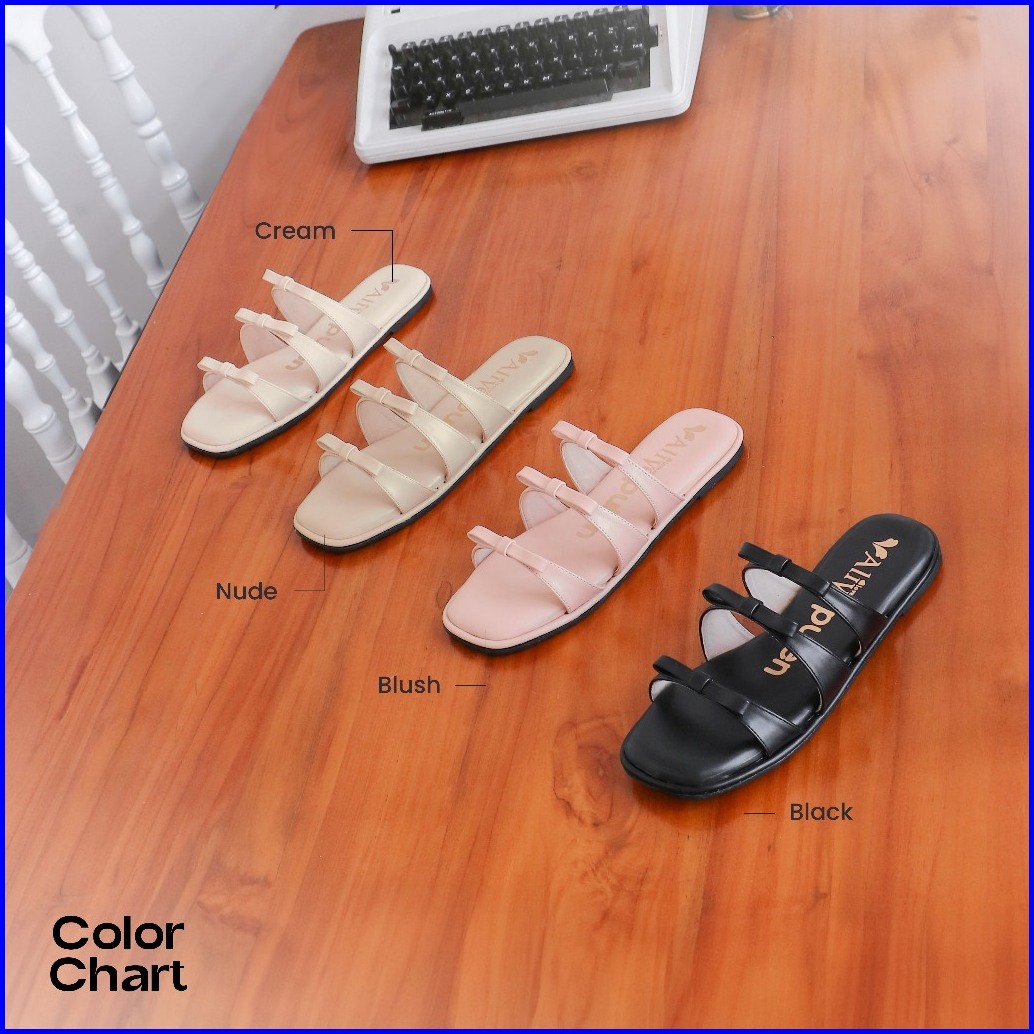 Alivelovearts X Pulen Sophie Triple Strap Flat 1cm Sendal Teplek Wanita Korean