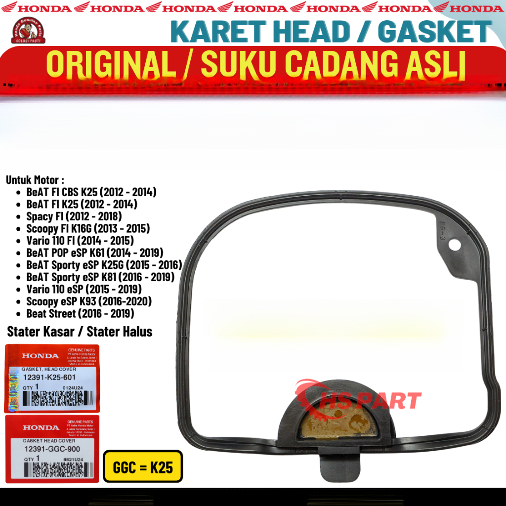 Karet Paking ket Cylinder Head Cover Beat Fi Stater Kasar Scoopy Spacy Vario 110 Fi Original AHM
