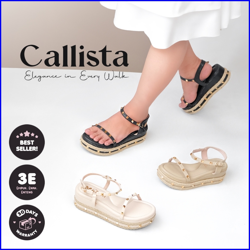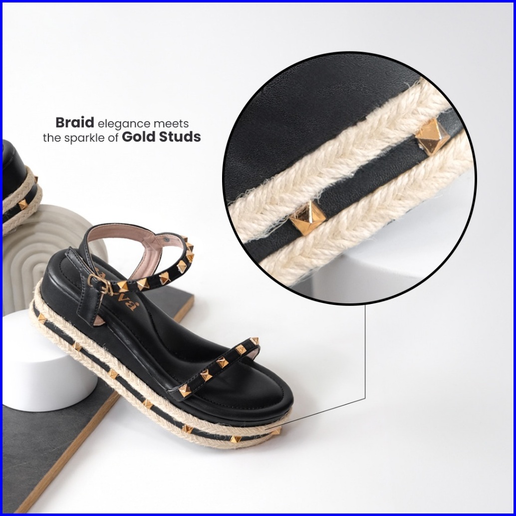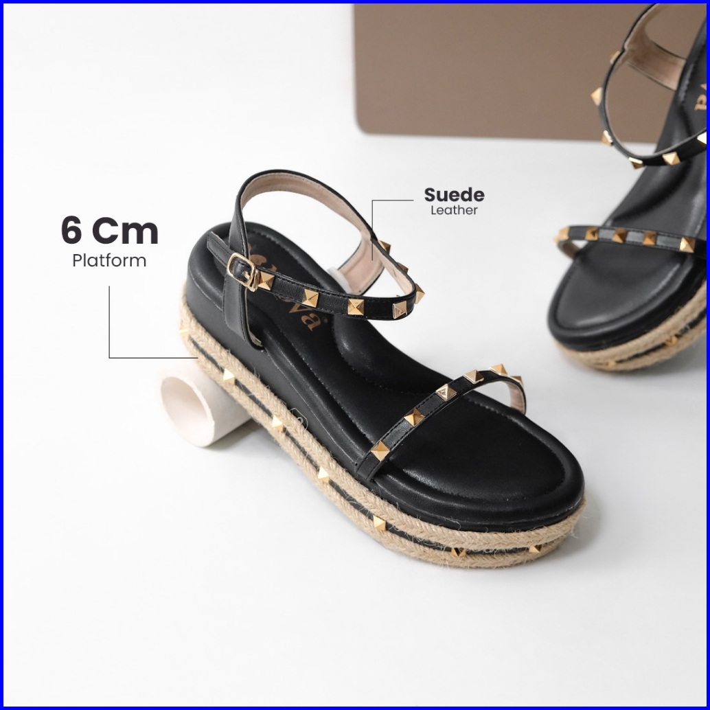 Alivelovearts Callista Premium Sandal Wedges 6cm Stud Wanita Studed Platform Sendal Kondangan Valentino