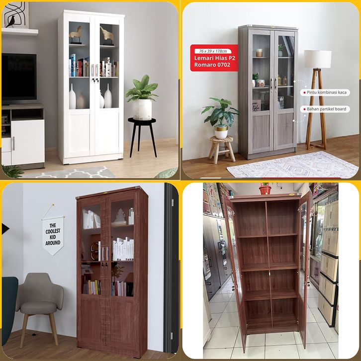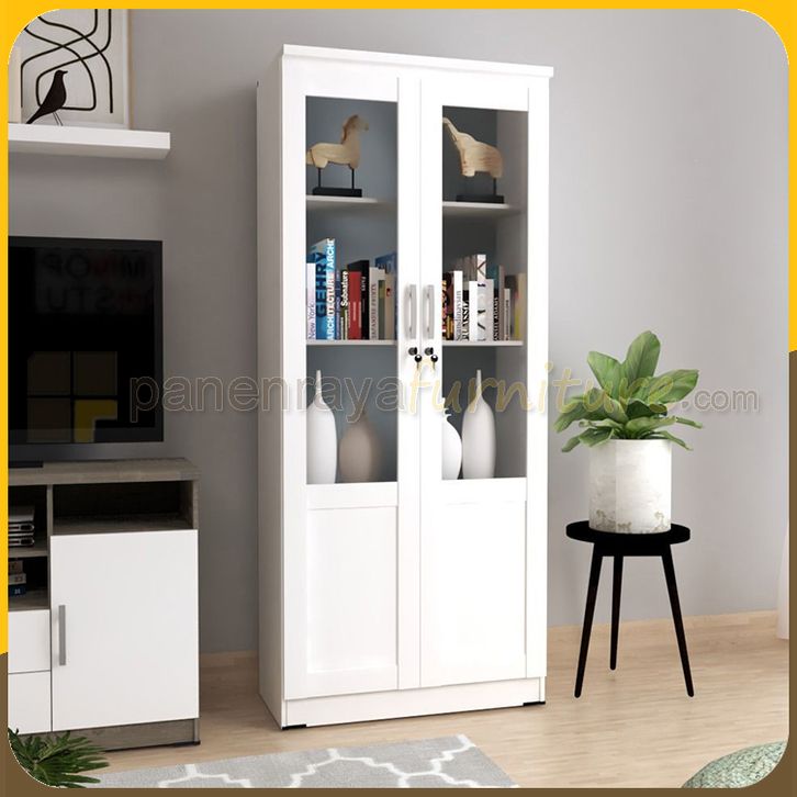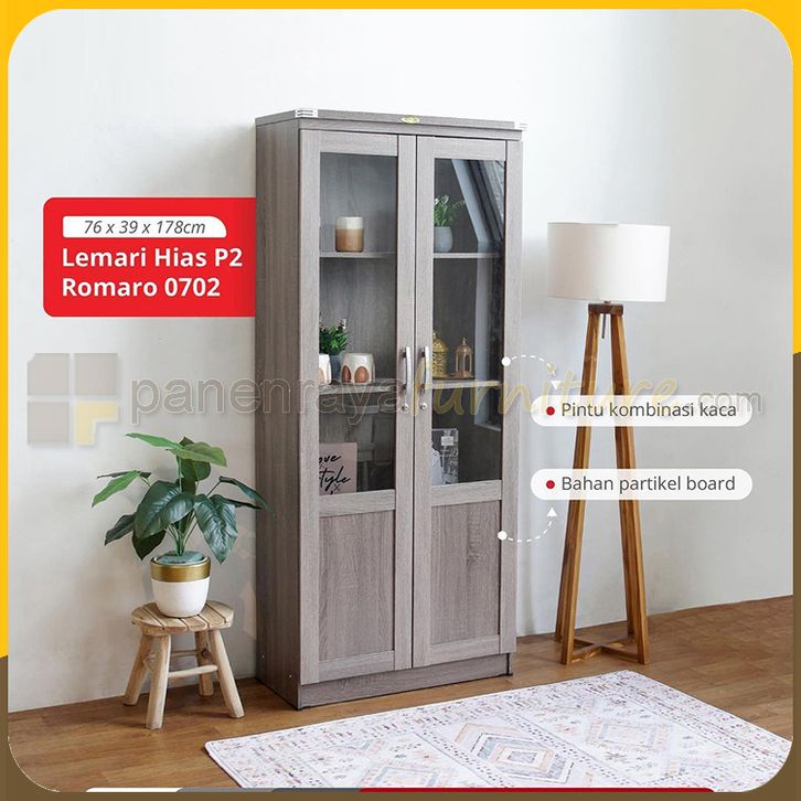 Romaro LHS0702 Lemari Buku / Lemari Hias / Lemari Pajangan 2 Pintu Kaca Minimalis