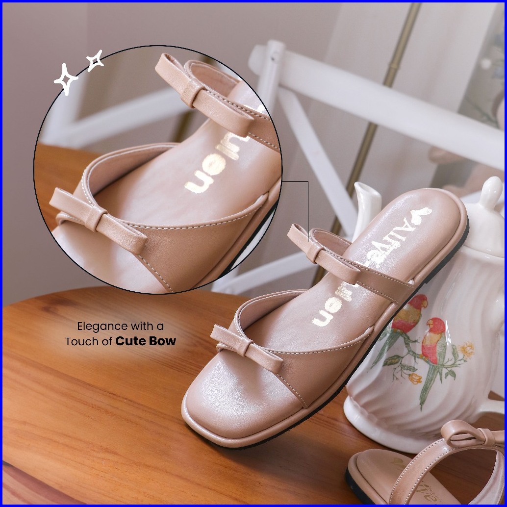 Alivelovearts X Pulen Marie Twin Strap Flat 1cm Sendal Teplek Wanita Korean