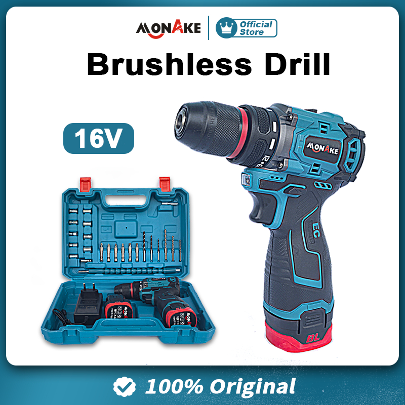 MONAKE ALAT JERMAN BRUSHLESS 16V MESIN BOR LISTRIK TANPA KABEL IMPACT DRILL CORDLESS PORTABEL WITH LI-ION BATTERIES-1
