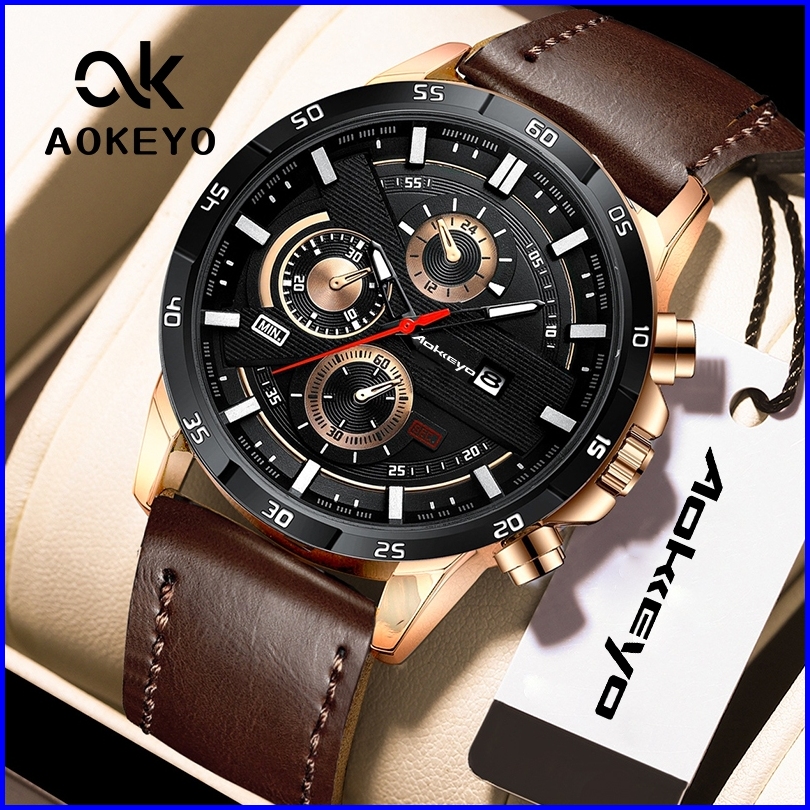 Aokeyo 216 Jam Tangan Pria Kulit Original Tahan Air Fashion Business Auto Date Analog Jam Tangan Cowokfree Box Kartu Gar