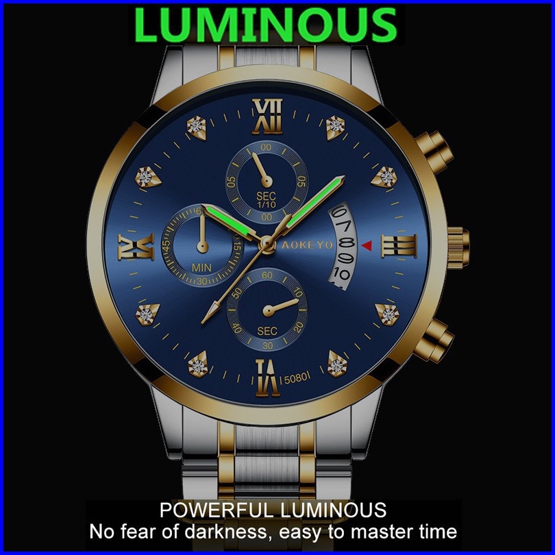 Aokeyo 5080 Jam Tangan Pria Anti Air Original Luxury Stainless Steelfree Box Kartu