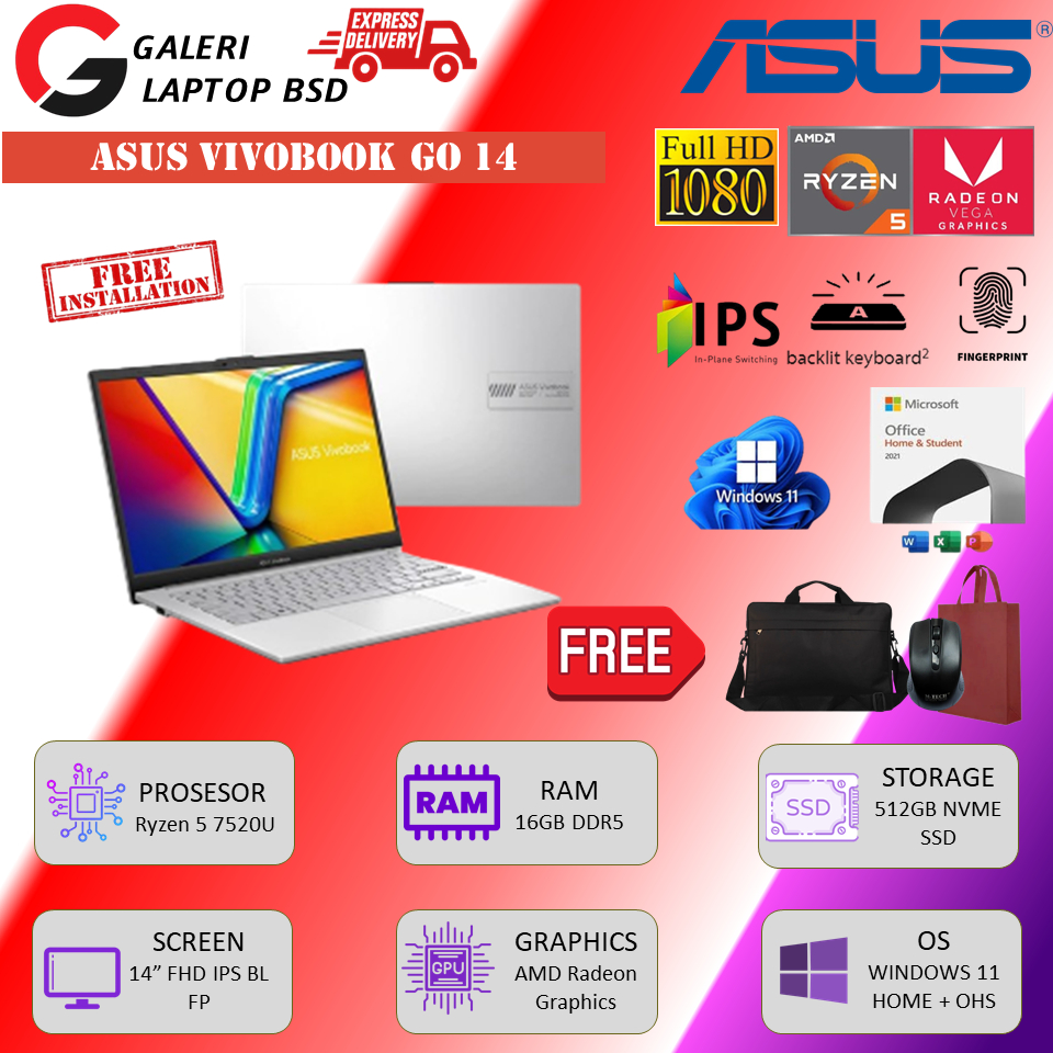 Laptop Kerja Asus Vivobook Go 14 E1404FA AMD RYZEN 5 7520U 16GB 512GB FHD IPS BL FP WIN11HOME + OHS
