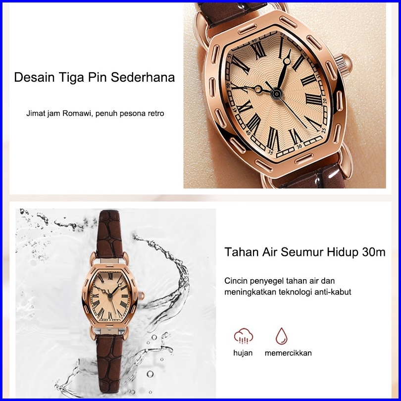 Aokeyo S053 Jam Tangan Wanita Klasik Mode Display Kuarsa Santai Jam Tali Kulit Tahan Air Jam Tangan Cewek Free Box Kartu