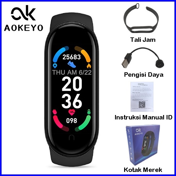 Aokeyo M6 Smartwatch Bluetooth Smartband Fitness Tracker Colour Display Heartrate Waterproof Jam Tangan Pria Wanita Digi