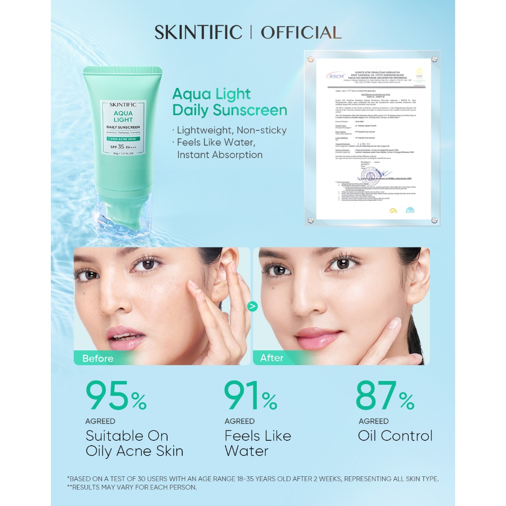 [Mall] SKINTIFIC OFFICIAL STORE Aqua Light Daily Sunscreen SPF 35 PA+++ 50ml Acne care Sunscreen Skin Tinted Sunscreen