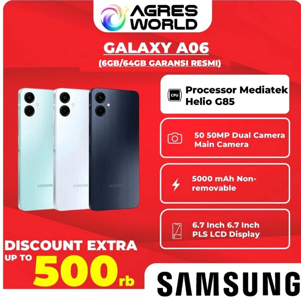 Samsung Galaxy A06 [4GB/64GB]- 6,7 inch 50MP + 2MP : 5000mAh Prosesor Helio G85 | 50MP + 2MP | Garansi Resmi 1 Tahun