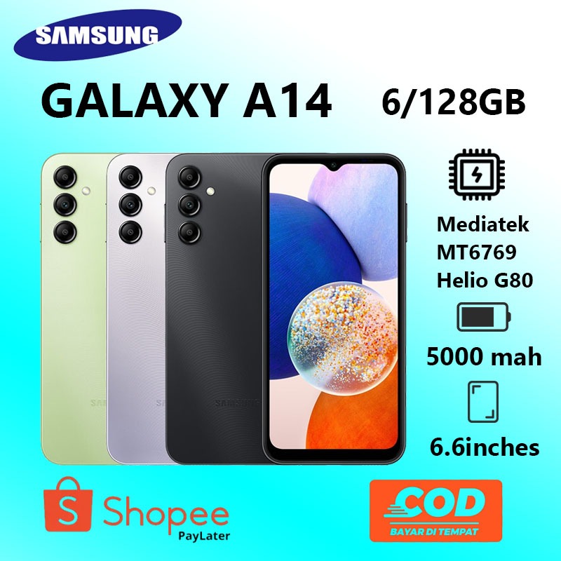 HP Samsung Galaxy A14 Ram 6/128GB 4G Smartphone 50MP+13MP Dual SIM