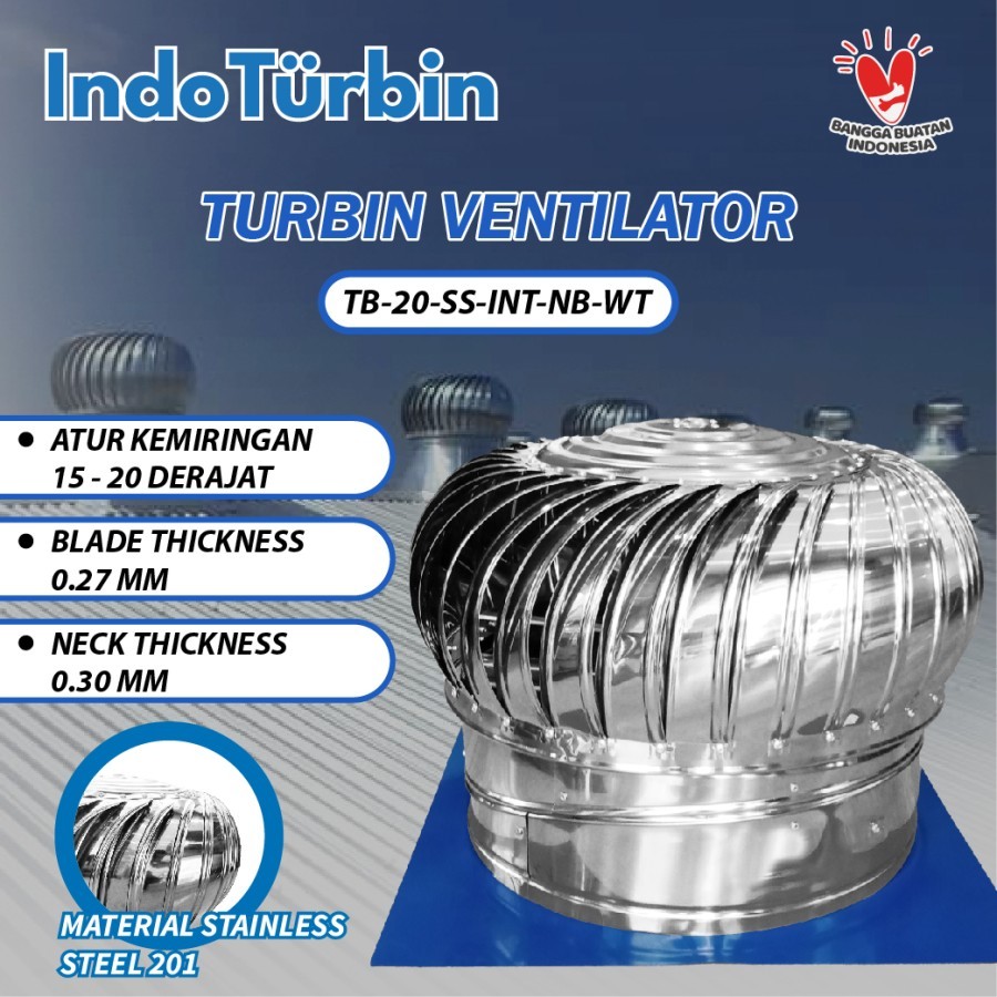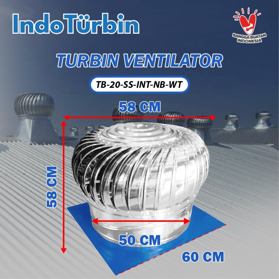 Turbin Ventilator 20 Inch IndoTurbin TB-20-SS-INT-NB-WT Roof Fan Ventilasi Exhaust Atap Rumah Pabrik Double Ball Bearing