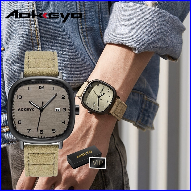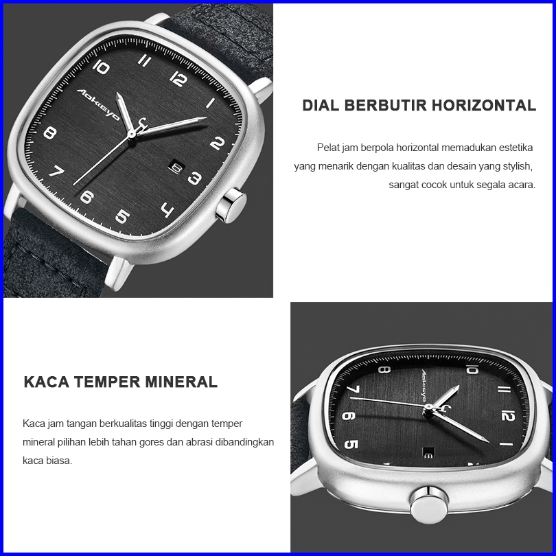 Aokeyo F043 Jam Tangan Pria Kulit Anti Air Original Terbaru Casual Tahan Air Square Leather Jam Tangan Cowok Free Box Ka