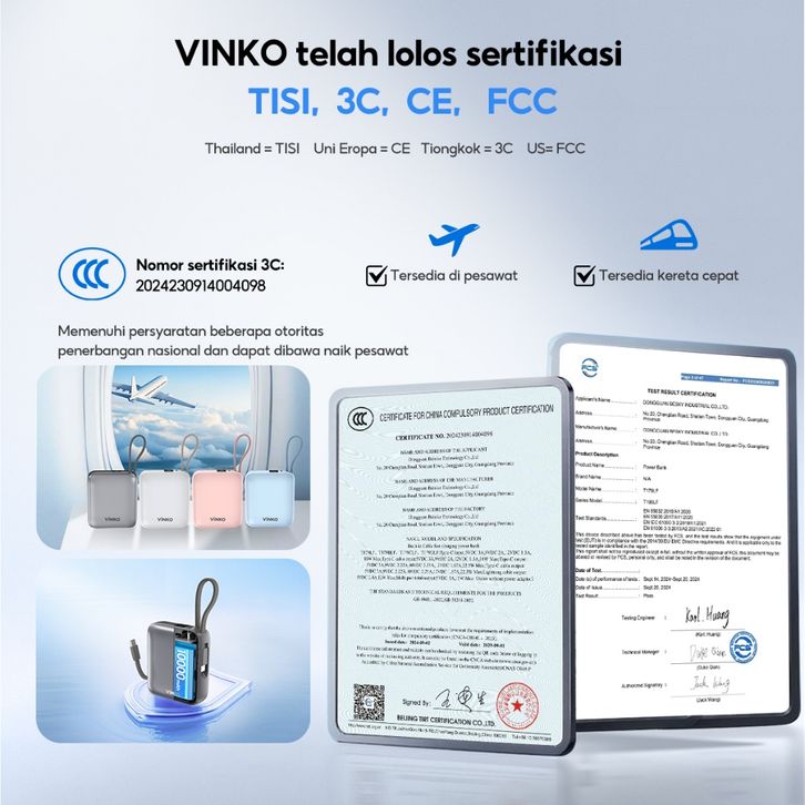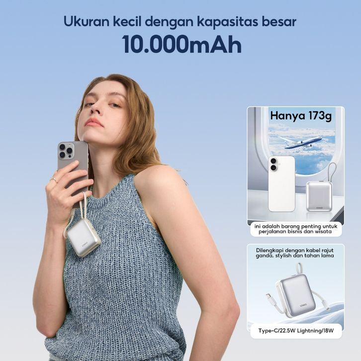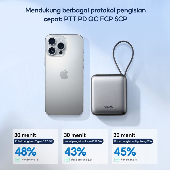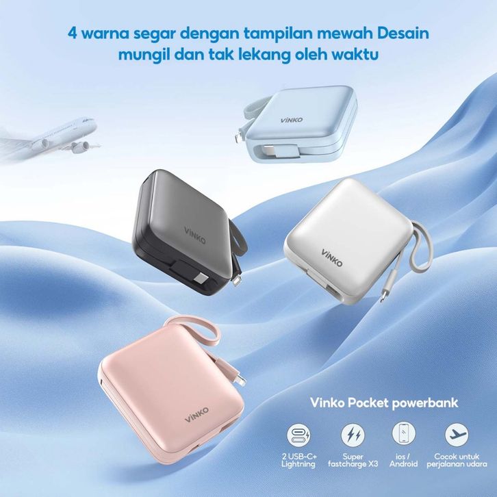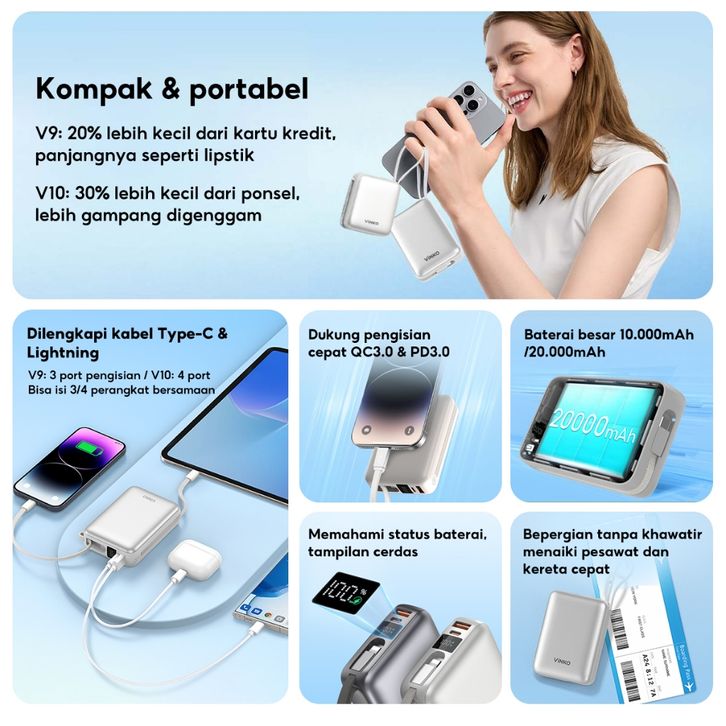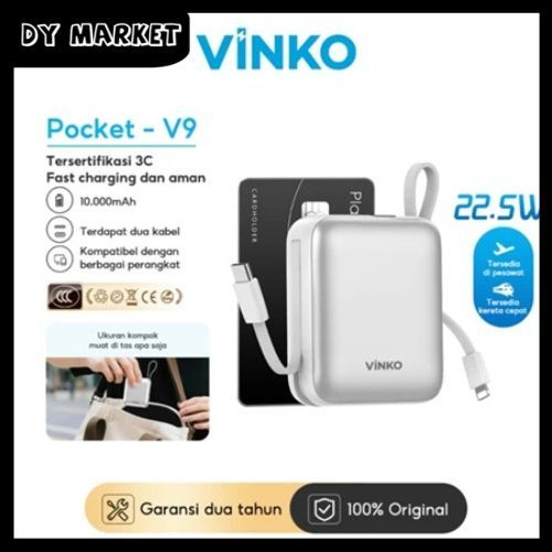 [Tersertifikasi CCC] VINKO V9 Pocket Powerbank 10000mAh 22.5W Fast Charging PD 3.0 Power bank With C+L Cable untuk iPhon