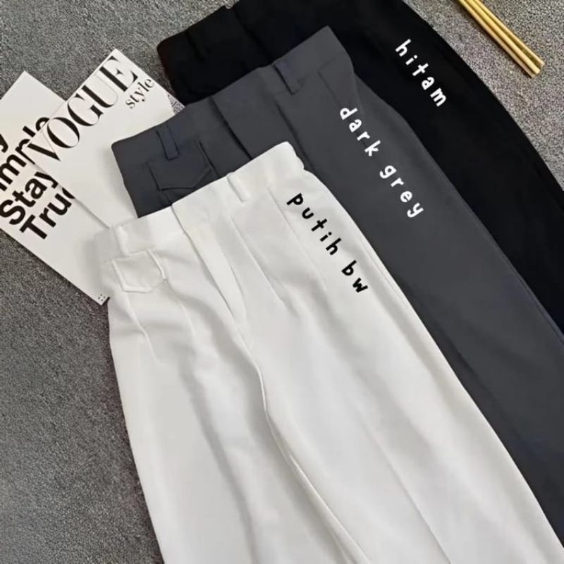 [Mall] ORO PANTS KNIT PREMIUM Highwaist Tebal Anti Kusut - Loose Pants Trousers Wanita - Celana Kantor Wanita - Kulot Panjang Terbaru