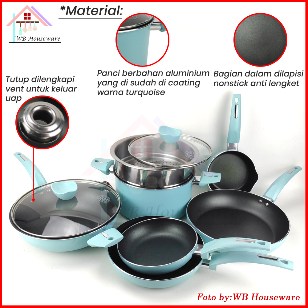 Panci Penggorengan Set / wajan anti lengket / 9pcs cookware set pastel SUPRA I READY STOCK!!!