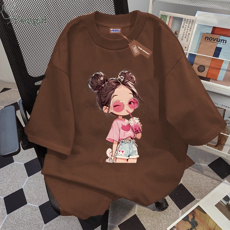 [Mall] Yesgirl Korea style Gadis Kecil print kaos kasual longgar| Kaos Oversize Wanita | Fashion korean style baju kaos oversize| Baju atasan wanita terbaru 100 PERSENcotton | Kaos Putih Wanita | 7.10