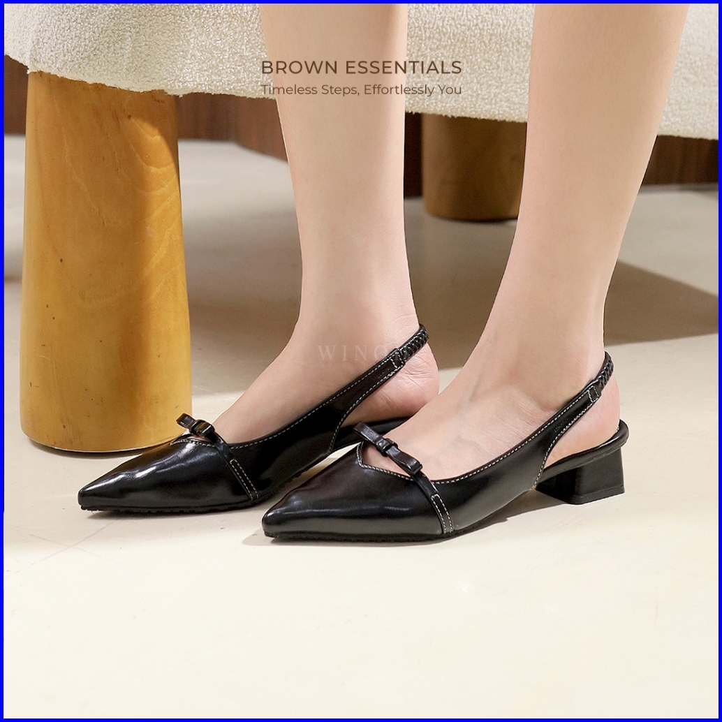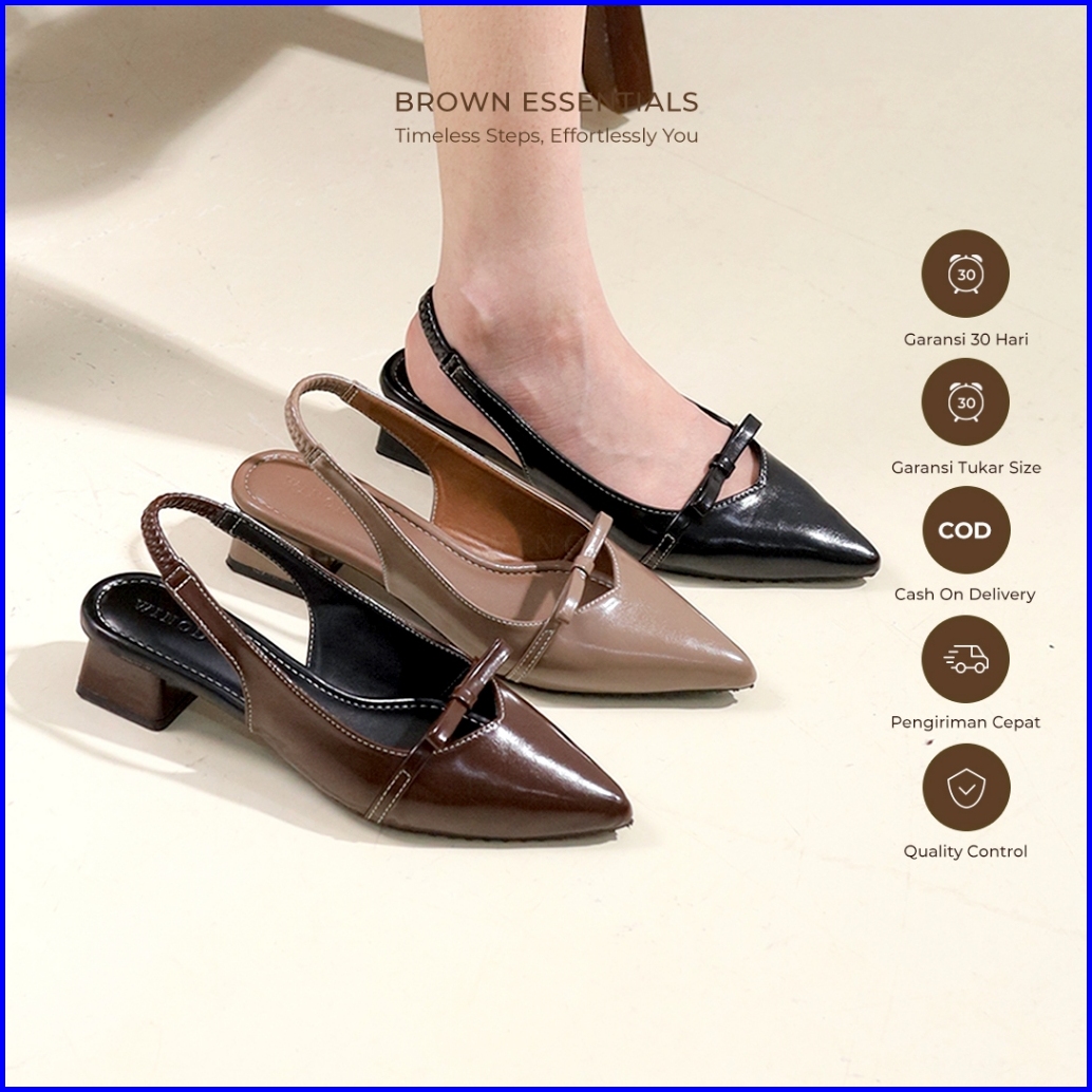 Winod Ivoria Heels Wanita Hak 3cm Sepatu Kerja Elegan Model Slingback Brown Essentials Daily