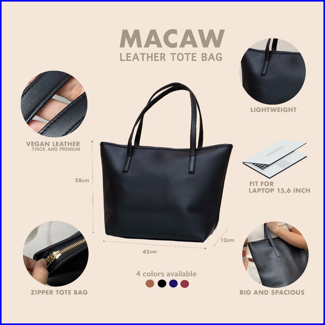 Krukuri - Tas Tote Bag Wanita Resleting - Zipper - Laptop Fit 15 6 - Macaw