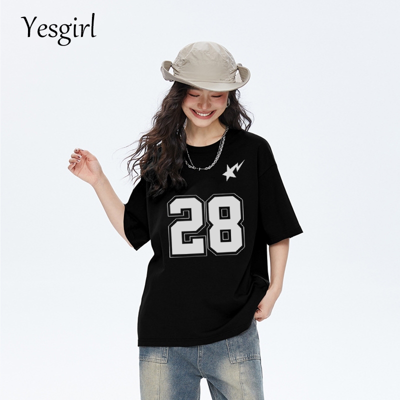 [Mall] Yesgirl Korea style Nomor 28 print kaos kasual longgar| Kaos Oversize Wanita | Fashion korean style baju kaos oversize| Baju atasan wanita terbaru 100 PERSENcotton | Kaos Putih Wanita | 7.4
