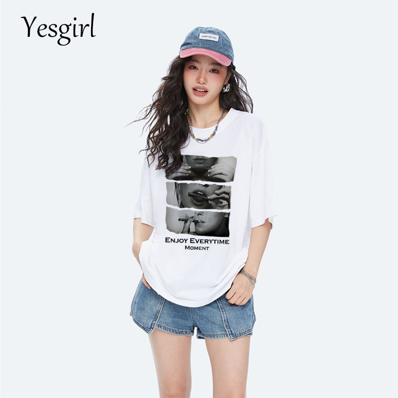 [Mall] Yesgirl Korea style ENJOY EVERYTIME MOMENT print kaos kasual longgar| Kaos Oversize Wanita | Fashion korean style baju k